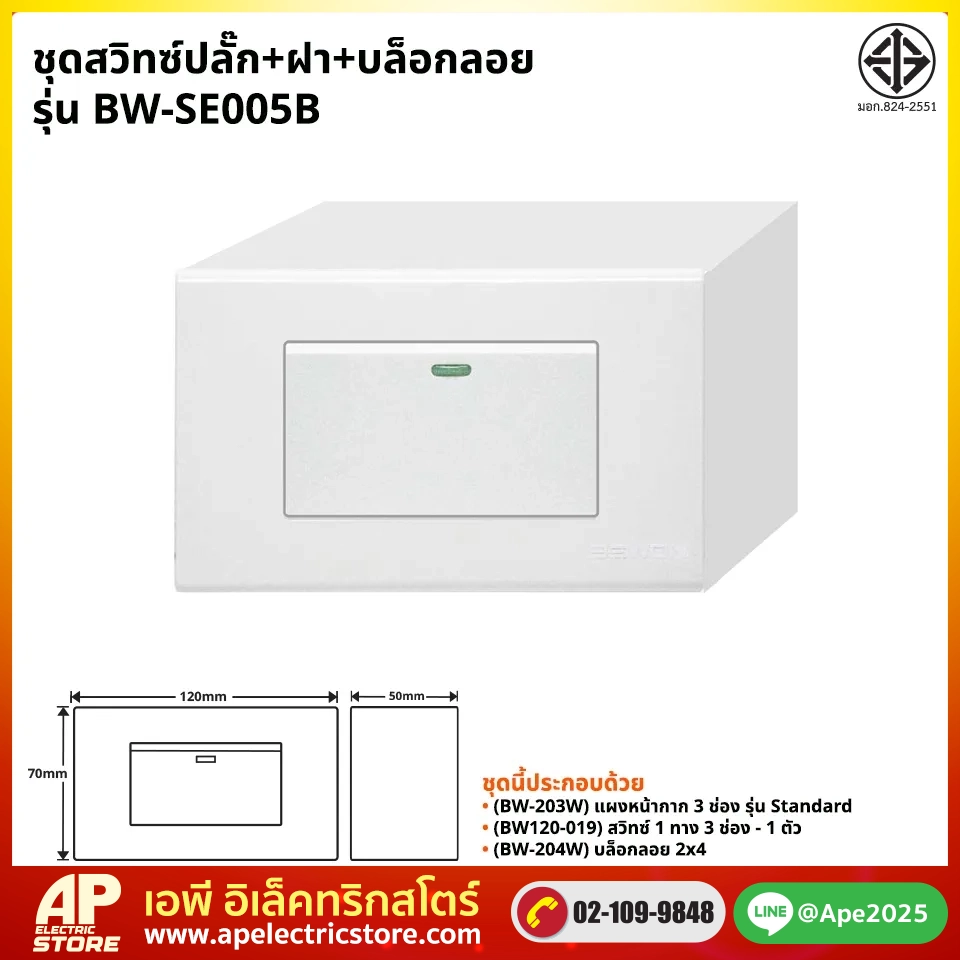 | Set includes | • 1x (BW-203W) 3Module Flush Plate with Plastic Grid • 1x (BW120-019) 3Gang, 1Way Switch • 1x (BW120-024) 2″x4″ Plastic Wall Box |
