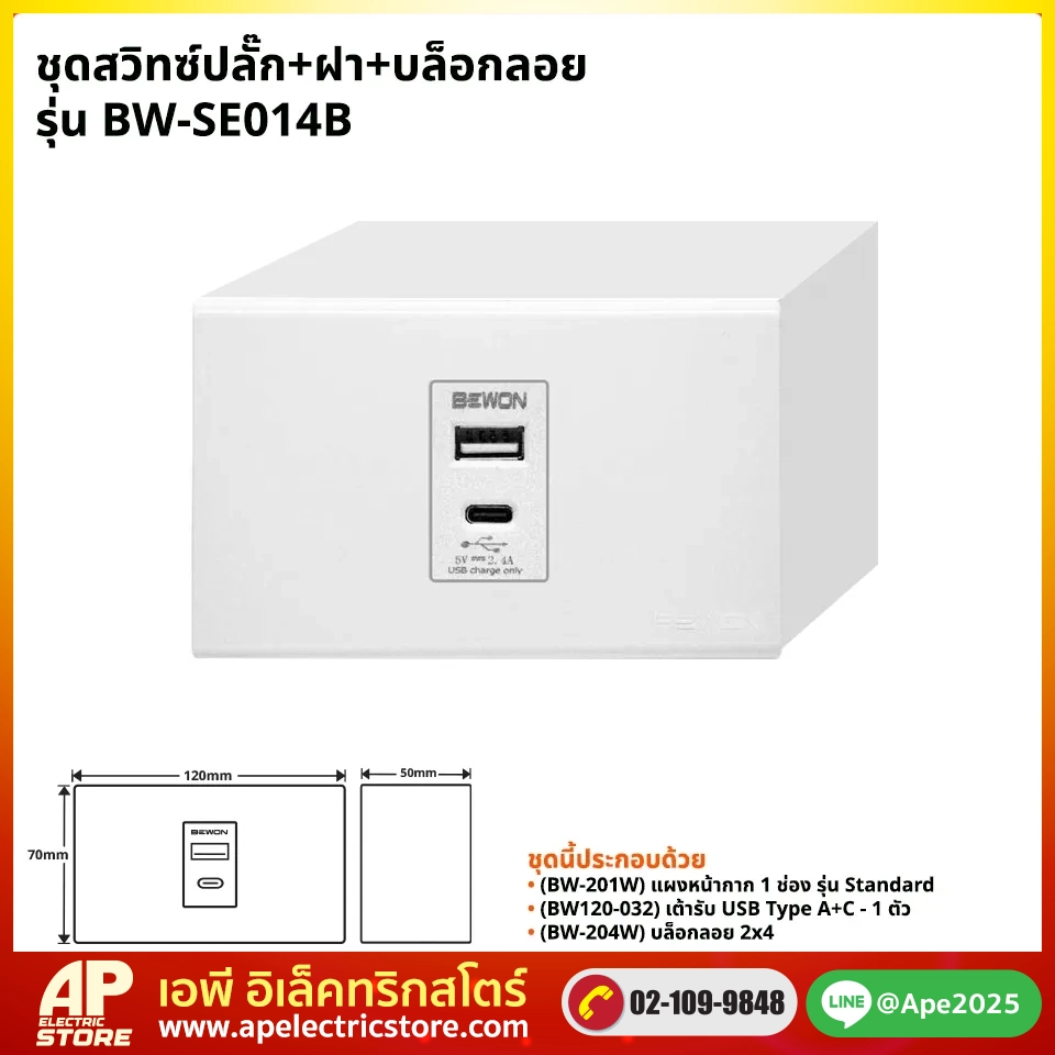 | Set includes | • 1x (BW-201W) 1Module Flush Plate with Plastic Grid • 1x (BW120-032) USB Type A+C Socket • 1x (BW120-024) 2″x4″ Plastic Wall Box |